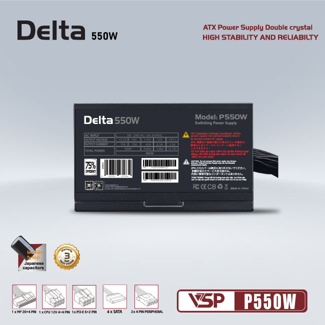 Nguồn máy tính VSP Delta P550W Chính Hãng
