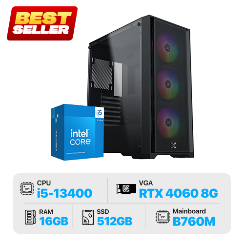 PC Gaming KLC-SkyII : i5-13400 | 16GB | 512GB SSD | B760M-A | RTX 4060 8GB | 650W | Case Xigmatek Sky II