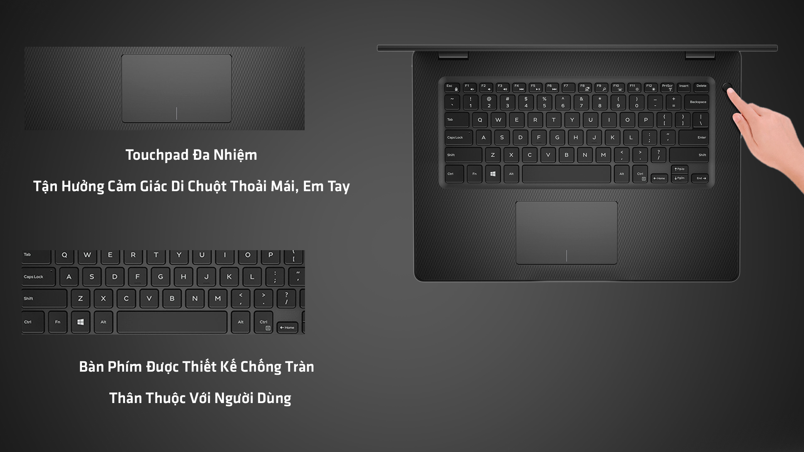 Hệ thống bàn phím được thiết kế chống tràn và thân thuộc với người dùng. Bạn sẽ không mất nhiều thời gian để làm quen với bàn phím vì đây là thiết kế tiêu chuẩn của của các dòng laptop dell, các phím cũng được tinh chỉnh khoảng cách hợp lí để bạn gõ chính xac hơn. Ngoài ra nút nguồn cũng được thiết kế riêng, đặt cạnh bên phải bàn phím vừa tạo điểm nhấn vừa giúp người dùng đỡ mất thời gian hơn cho việc tìm kiếm.